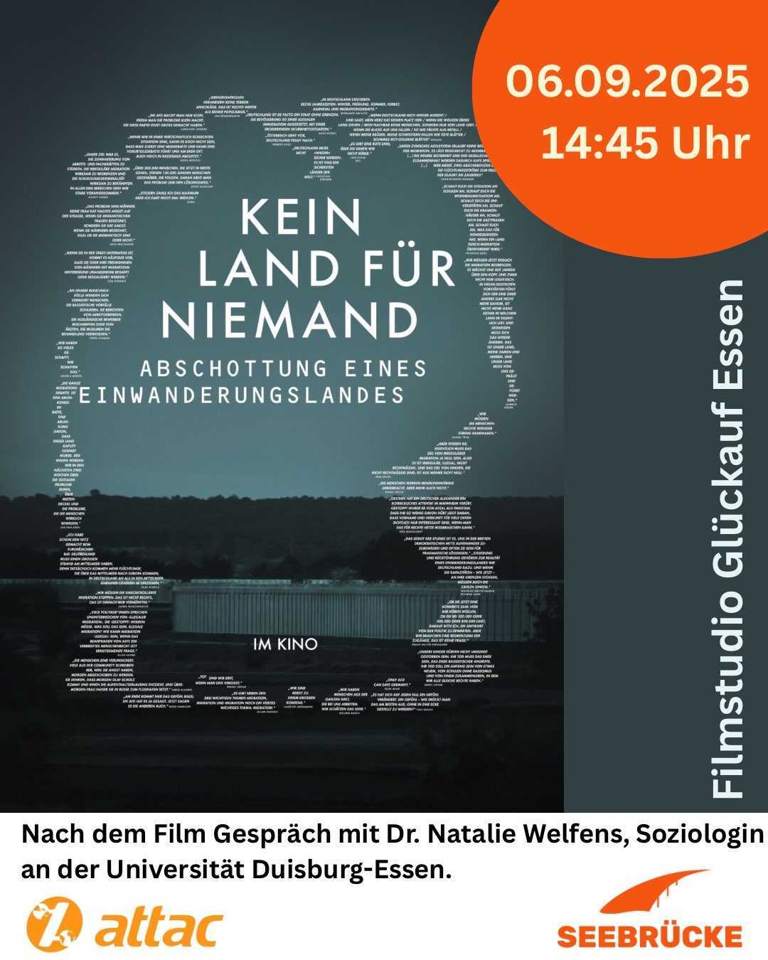 Die Seebrücke Essen zeigt den Film am 06.09. um 14:45 Uhr im Filmstudio Glückauf gemeinsam mit Attac. Anschließend findet ein Gespräch zum Film mit der Soziologin Dr. Natalie Welfens statt. Der Dokumentarfilm begleitet eine Rettungsmission im Mittelmeer, zeigt die katastrophalen Zustände in Lagern für Geflüchtete und gibt Menschen eine Stimme, die den lebensgefährlichen Weg nach Europa überlebt haben.